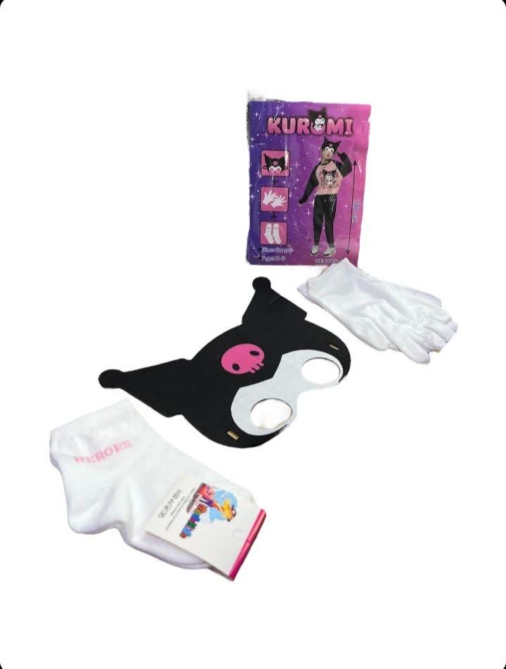 نقاب این مجموعه به صورت بندی می باشد و کاملا دور سر را می پوشاند. در بسته بندی لباس کرومی دو عدد جوراب سفید برای پوشاندن پا ها و دو عدد دستکش سفید برای پوشاندن دست ها و شبیه کردن پوشش به لباس کرومی قرار دارد.