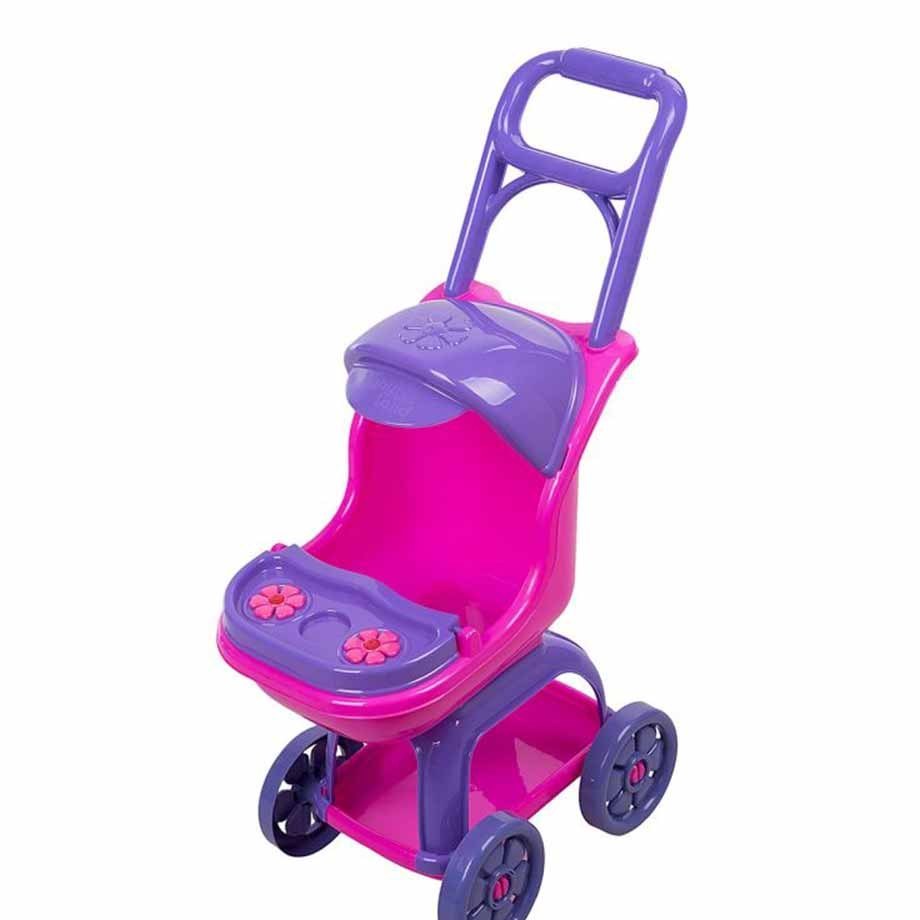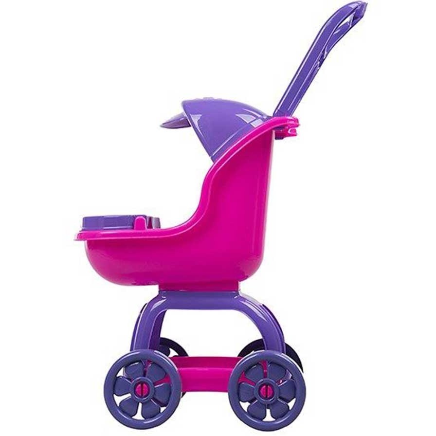 اگر از بالای کالسکه به آن نگاهی بیندازیم، دستههایی دارد که مادهی اولیهی تولید آن پلاستیک است. کمی پایینتر سایبان پلاستیکی بنفش رنگی وجود دارد. در قسمت جلوی نشمین محافظی قرار دارد که به کمک آن میتوان عروسک را نگه داشت. نقطهی تماس کالسکه با زمین چهارچرخ است که روی چهارپایهی کالسکه قرار گرفتهاند. چرخها از جنس پلاستیکاند که پایهها در بین دوچرخ به محورشان وصل میشوند. همچنین در قسمت پایینتر کالسکه سبد پلاستیکی قرار گرفته است که کودک میتواند وسایل خود را درون آن قرار دهد. میتوانید با خرید این کالسکه، کودک عزیزتان را حسابی خوشحال کنید.