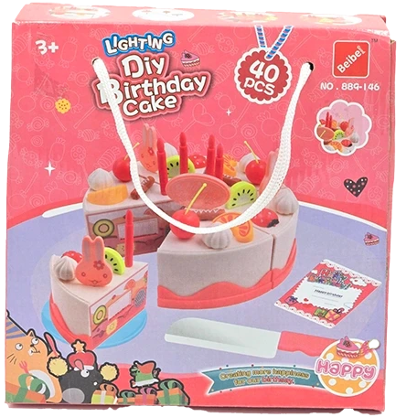 کیک تولد اسباب بازی یک ست اسباب بازی کودکانه زیباست برای با هم بازی کردن و در موقعیت پذیرایی و خانه داری قرار گرفتن کودکان است. این محصول دارای 40 قطعه می باشد که با سر هم بندی و مونتاژ آن یک اسباب بازی کیک زیبا برای سرگرمی کودکان فراهم می گردد. کودکان با هم بازی می کنند و از بازی خود لذت می برند . تنوع رنگ و وسایل مشابه واقعی بازی با این اسباب بازی کودکانه را برایشان لذت بخش می کند.