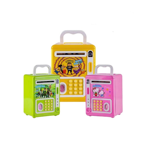 اسباب بازی قلک رمزدار اثر انگشتی موزیکال :این گاو صندوق بامزه برای کودکان بسیار جذاب و دوست داشتنی و شما می توانید با خرید این محصول به فرزندان خود پس انداز کردن رابه آن ها بیاموزید و هم می توانید سرمایه ای برای آینده آنها جمع آوری کنید.همچنین دو بخش برای انداختن سکه و بخشی برای قرار دادن اسکناس دارد که اگر سر اسکناس را به محفظه نزدیک کنید اسکناس بلعیده می شود.می توانید برای در قلک از رمز چهار رقمی استفاده کنید و هنگام وارد کردن اعداد نور و صدا پخش خواهد شد.