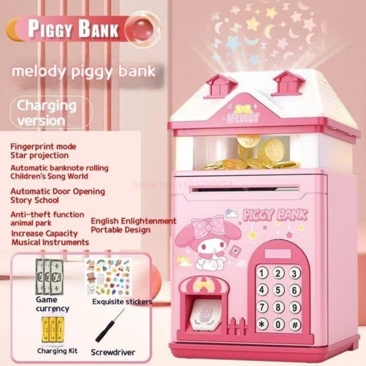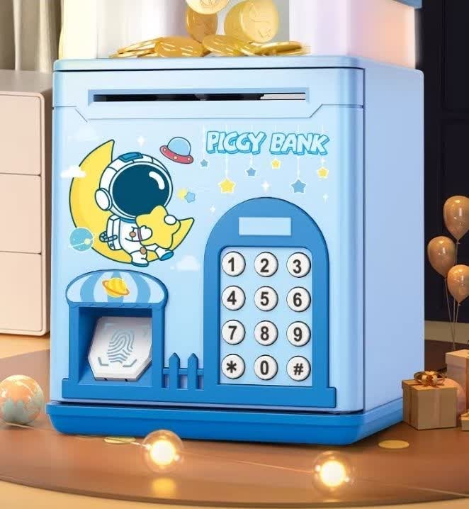 اسباب بازی قلک رمزدار اثر انگشتی مدل چمدانی آیتم 6688-16 :این گاو صندوق بامزه برای کودکان بسیار جذاب و دوست داشتنی و شما می توانید با خرید این محصول به فرزندان خود پس انداز کردن رابه آن ها بیاموزید و هم می توانید سرمایه ای برای آینده آنها جمع آوری کنید.همچنین دو بخش برای انداختن سکه و بخشی برای قرار دادن اسکناس دارد که اگر سر اسکناس را به محفظه نزدیک کنید اسکناس بلعیده می شود.می توانید برای در قلک از رمز چهار رقمی استفاده کنید و هنگام وارد کردن اعداد نور و صدا پخش خواهد شد.