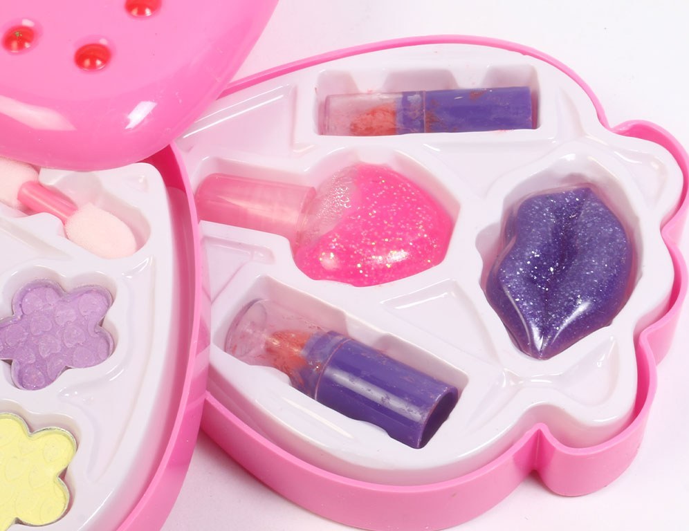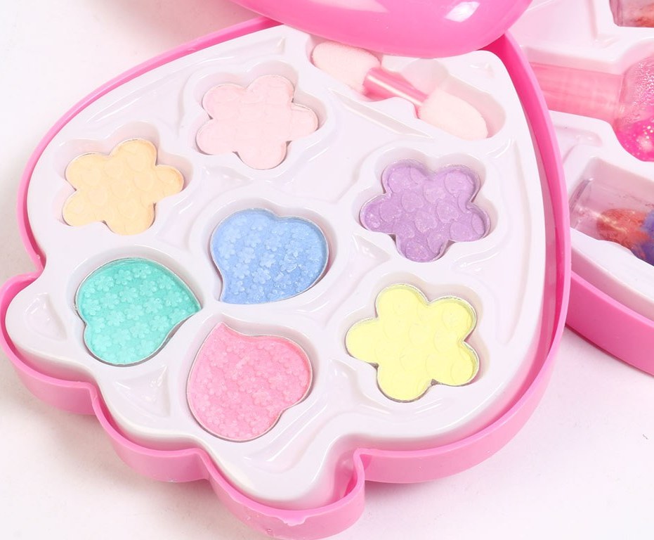 دختر بچه ها از همان سن کم به داشتن لوازم آرایشی دخترانه مخصوص خودشان علاقه دارند و به آن ها احساس اعتماد به نفس و قدرت می دهد. از جمله اسباب بازی ست لوازم آرایش مدل توت فرنگی جعبه ای که مورد علاقه اغلب دختر بچه هاست. از آن جایی که برخی از این وسایل را نمی توان نمونه واقعیش را در اختیار کودک قرار داد، بنابر این تهیه این اسباب بازی شبیه سازی شده این لوازم، دختر بچه ها را بسیار خوشحال می کند.