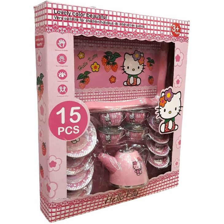 ست قوری و فنجان 15 تکه فلزی با جعبه طرح کیتی، یک انتخاب عالی برای هدیه دادن به کودکان و نوجوانان است. این ست علاوه بر اینکه یک اسباب بازی جذاب و سرگرمکننده است، به کودکان کمک میکند تا مهارتهای اجتماعی و حرکتی خود را تقویت کنند و دنیای بزرگسالان را بهتر درک کنند.